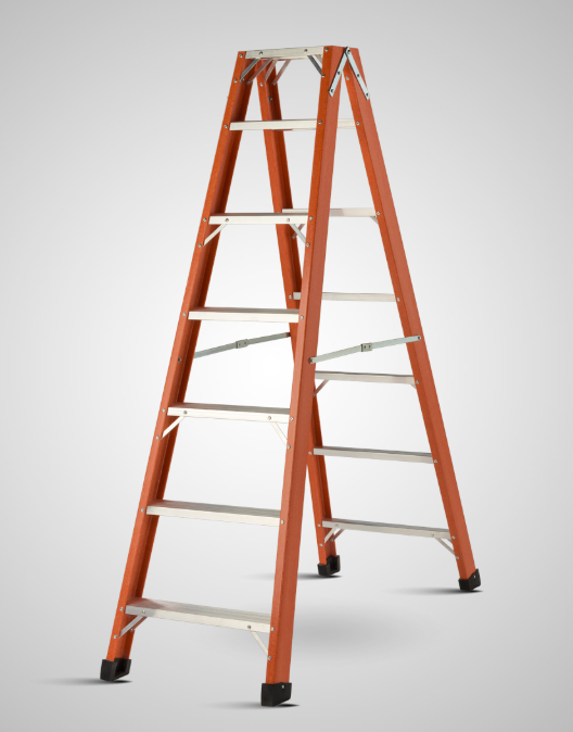Escada em fibra de vidro, garantindo alta resistência, suporta até 120kg.