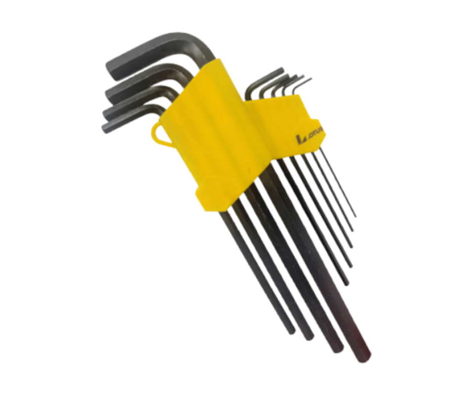 Jogo com 9 chaves allen preta, produzida em aço carbono, Prix, super custo benefício, com medidas de 1,5 – 2 – 2,5 – 3 – 4 – 5 – 6 – 8 e 10mm. Possui ponta sólida para parafusos tipo Allen com centro em baixo relevo, haste em L com braço longo para flexibilizar e facilitar a operação, embalagem em estojo de plástico rígido.